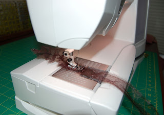 I then set my sewing machine's stitch length to 1.5 which I later lowered to 1 or 0.5 for a tighter stitch. The 2 organza fabrics I used had different weaves. The brown had a loose weave whereas the wine colored organza had a tighter weave. You may need to experiment with your machine to get the right stitch.